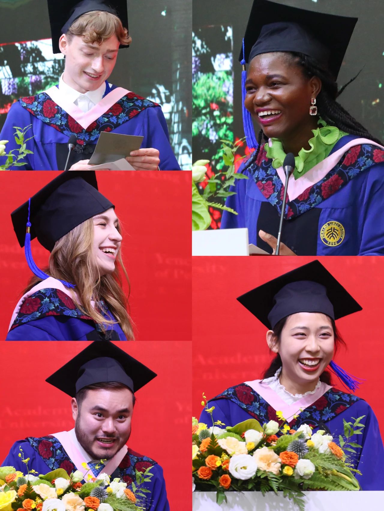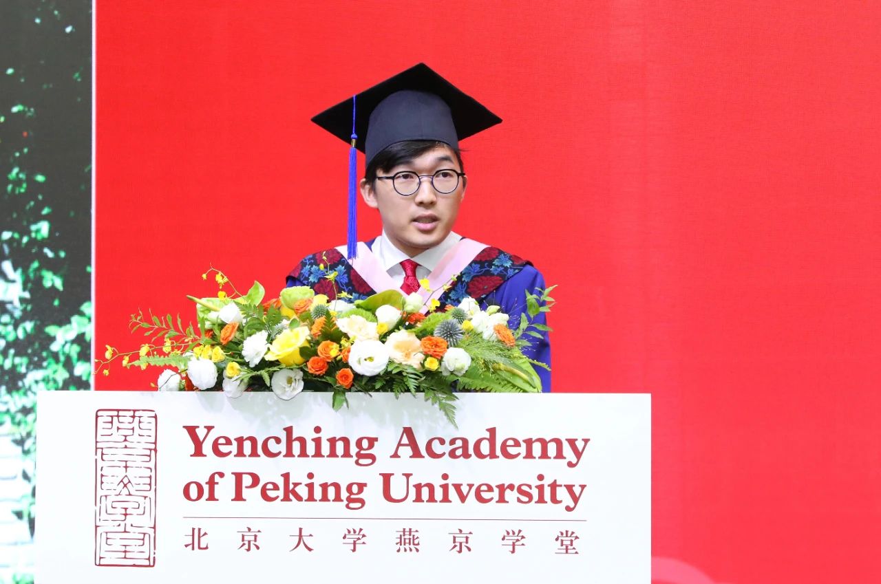 Jae Young Lee delivered a graduation speech on behalf of his fellow graduating Scholars, inviting his peers to reflect on the past years. Coming from different countries and career backgrounds, they joined the Academy in China and earned the title of Yenching Scholar. Lee and his colleagues at the Graduate Students Union (GSU) organized online and onsite student events, including orientations, receptions, and dinner parties at Zhongguanyuan Global Village PKU and Shaoyuan. Together, they established a new homelike base at Peking University. Chinese and international students evolved from online study group members into partners in onsite events. The YCA community grew larger, and stories of youth from around the world unfolded in China.