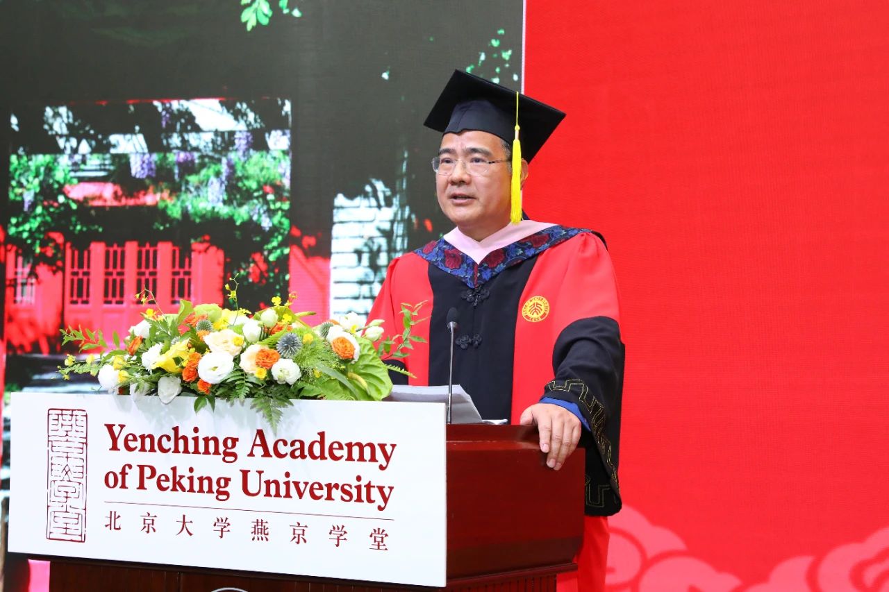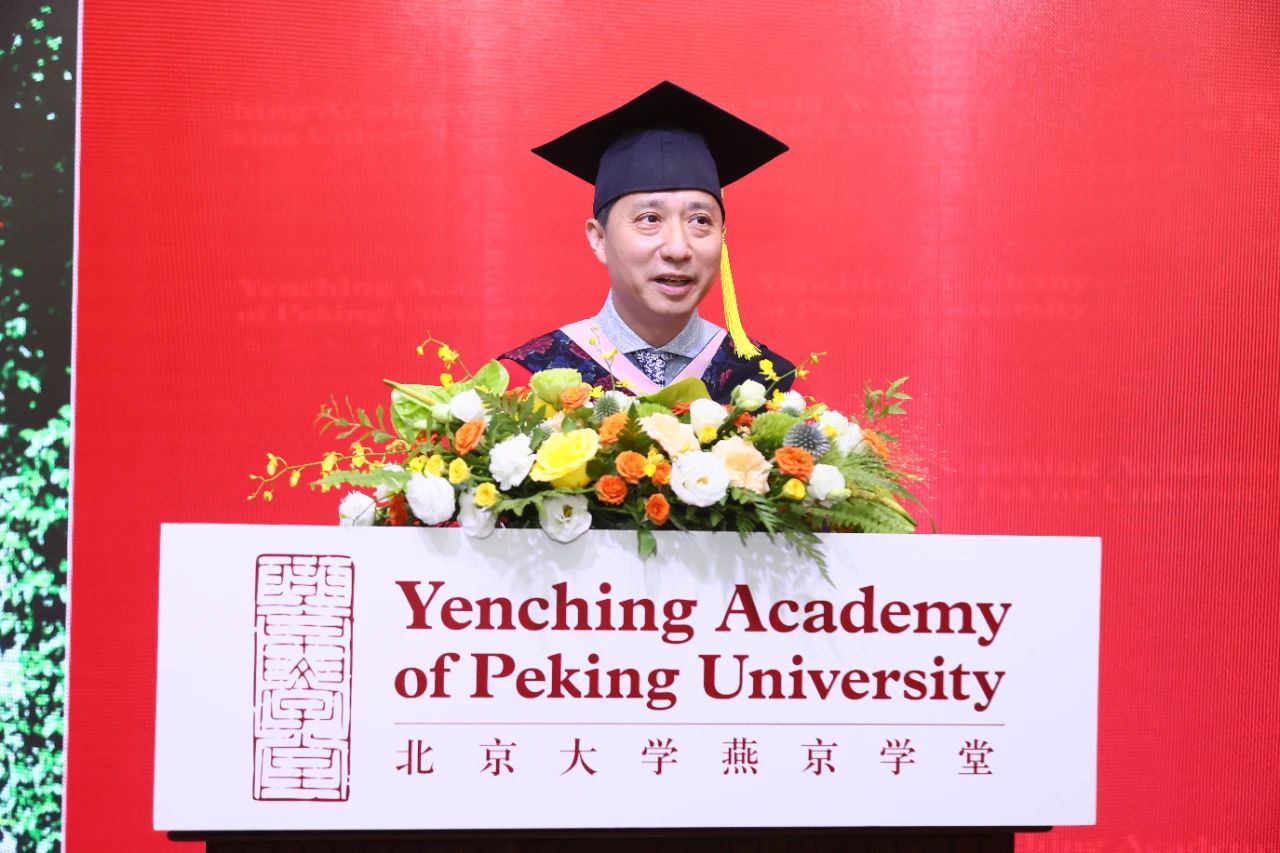 Michelle Lu-Ferguson, a fellow of the American College of Obstetricians and Gynecologists (FACOG), Director of the Women’s Health Center, and Director of the OB/GYN Center of Operational Excellence, delivered a speech as the parents’ representative. A PKU undergraduate herself in the 1980s, Dr. Lu-Ferguson expressed great joy in delivering the speech both as an alumna and a parent. She was "thrilled" to see her daughter Emma Ferguson study at Yenching Academy, where she received top-tier education in her field, connected with fascinating individuals from around the world, and forged lasting friendships. Dr. Lu-Ferguson appreciated the Academy’s role in fostering cross-cultural exchanges and expressed confidence in the future of the Scholars: "The world is ever-changing, offering both opportunities and challenges. Yet, you are prepared. The Yenching Academy has equipped you with the knowledge and perspective needed to make a meaningful impact. Your experience of learning from each other has given you a global understanding that will be invaluable as you navigate and address complex issues ahead." She also shared her own experience studying at Peking University, highlighting three lessons: embrace challenges, stay curious, and value connections.