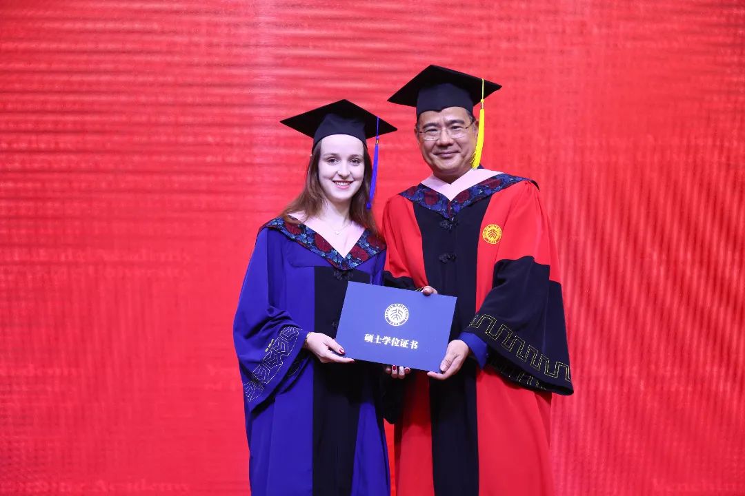 Professor Lu Yang, Director of Graduate Studies, announced the list of graduates. Dean Dong Qiang and Associate Dean Fan Shiming conferred diplomas to the graduates attending the ceremony and turned their tassels. Warm applause carried all the best wishes.