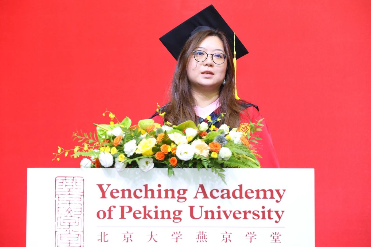 Associate Professor Yu Jia from the Center for Social Research, Guanghua School of Management, Peking University, spoke on behalf of the faculty. She congratulated the graduating Scholars on their achievements over the two years at the Academy: "The classes at Yenching Academy, discussions with your classmates and professors, and your own research have fostered independent and critical thinking." Professor Yu found teaching at the Academy to be a fruitful experience: "The knowledge and experiences I have gained from teaching and mentoring students here have been profoundly unique."