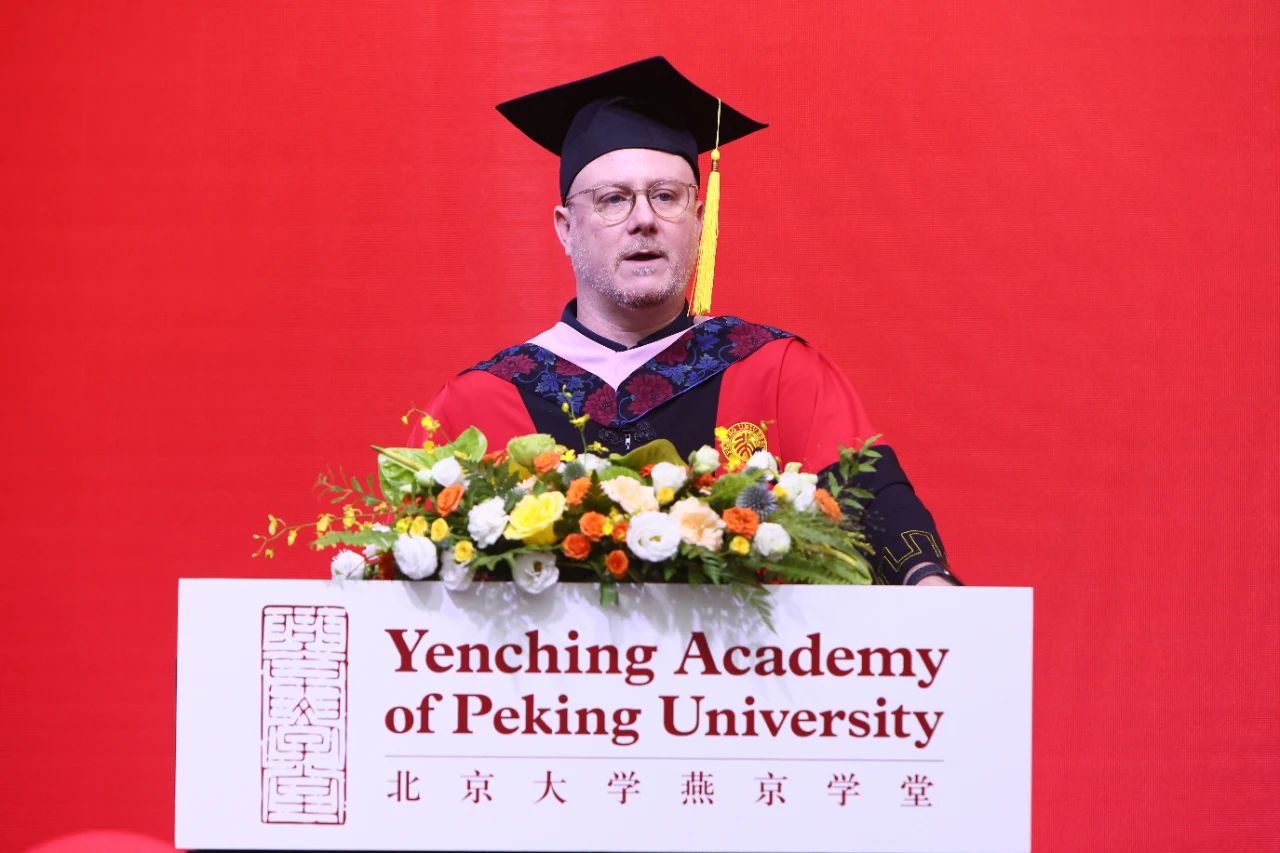 Associate Dean Brent Haas emotionally recalled the day two years ago when the graduating Scholars first arrived at Yenching Academy. They had come from various parts of the world, carrying their dreams and aspirations, to explore the history and modern life of the ancient and vibrant land of China. However, due to the Covid-19 pandemic, many were initially unable to come to China and had to start their studies online. Later, as pandemic-related travel restrictions eased, they were finally able to arrive on campus. During their time in China, they witnessed and experienced how the country gradually reopened to the outside world as pandemic control measures were lifted step by step. The Academy was delighted to welcome this new cohort, which brought new vitality after the prolonged pandemic. The Associate Dean reminded the graduating Scholars about the hardships and challenges they might face in the future, which are part of every person's life journey. He emphasized that it is through setbacks that one grows stronger and perseveres. He encouraged them to find role models, draw on their life wisdom and strengths, and strive for excellence. At the same time, he urged them to be compassionate and supportive, shedding light on the lives of others and offering a helping hand to those in need. He expressed his hope that our Scholars would become knowledgeable and compassionate individuals.