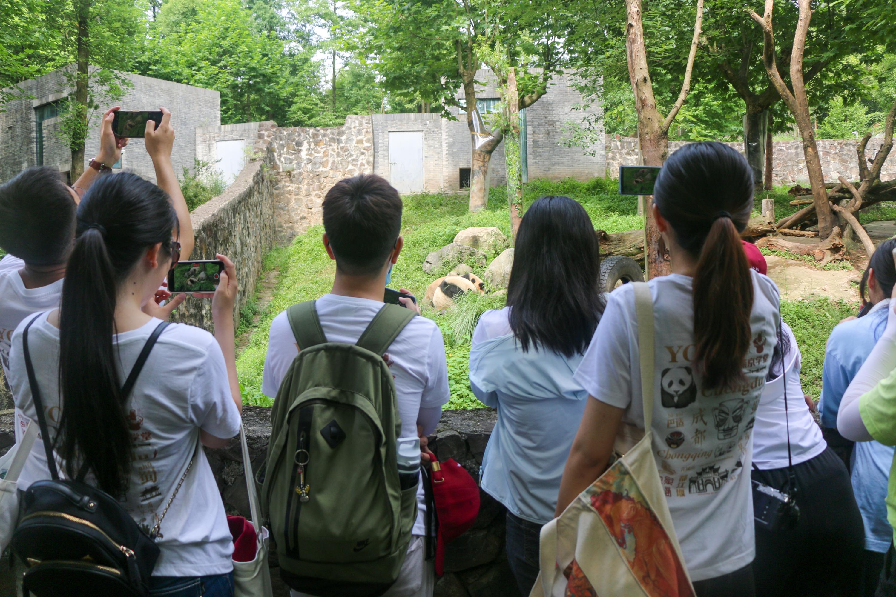 The day following their arrival in Sichuan Province, the enthusiastic group of YCA Scholars and instructors headed to the Dujiangyan Giant Panda Base, located in Qingchengshan Town. They toured several sets of monitoring enclosures, watched the pandas play, eat and climb trees, and listened to their tour guide's descriptions about panda's life in the Base and the government's efforts to preserve the endangered species. Aside from the black and white-coloured pandas, the group also found other animals, including red pandas and a black bear.