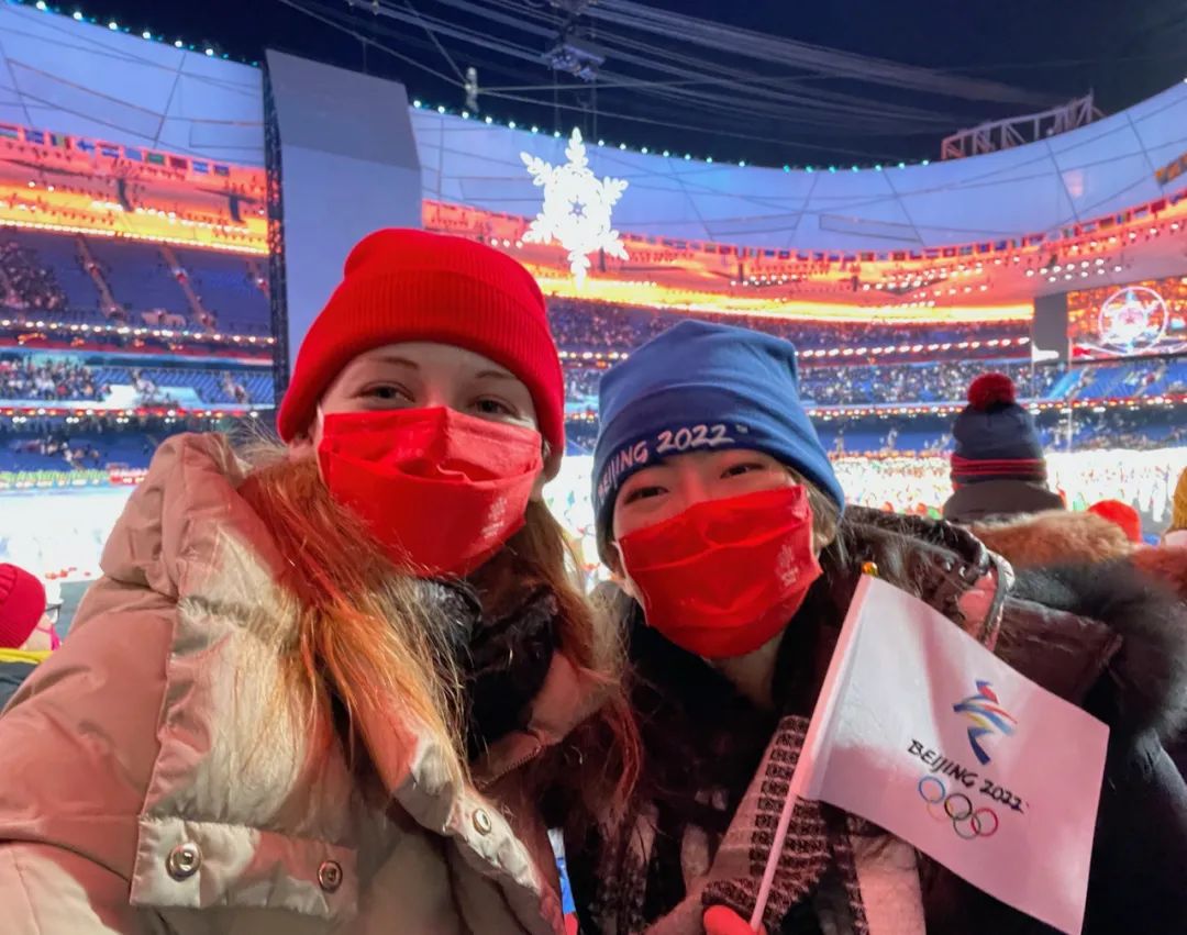 American students Sarah Brooker and Brook Jiang from our 2021 Cohort were “lucky birds” who sat in the audience of the Bird’s Nest Stadium at the Opening Ceremony. Sarah was excited and, as a History student, felt touched by the twenty-four solar terms countdown. “The countdown was extraordinary and stopped at the Beginning of Spring. It echoed the scene of farming and the children’s performance with snowflakes. It showed us a vision of hope and something really promising. I felt in the performances solidarity and expectation on future and younger generations,” Sarah explained.