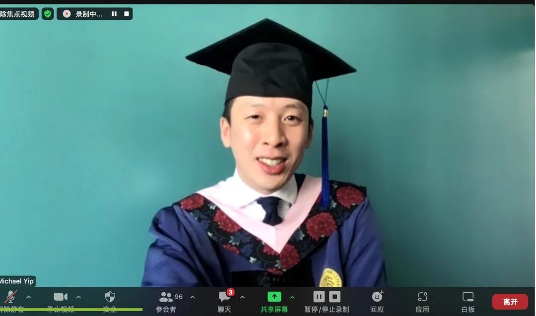 Following this speech, Assistant Dean Chen Changwei took to the podium to announce the names of the graduating Scholars resident at the on-campus YCA Shaoyuan dormitory. He congratulated the students for defeating the “tyranny of distance,” possessing a window of hope despite the pandemic, and successfully graduating. Similarly, Associate Dean Haas read the names of graduating Scholars who attended the graduation ceremony online.