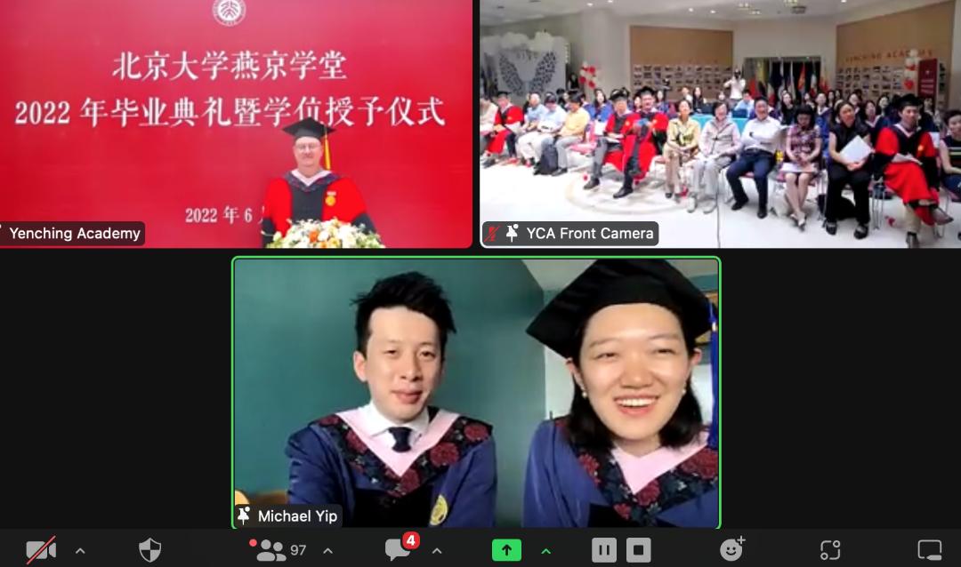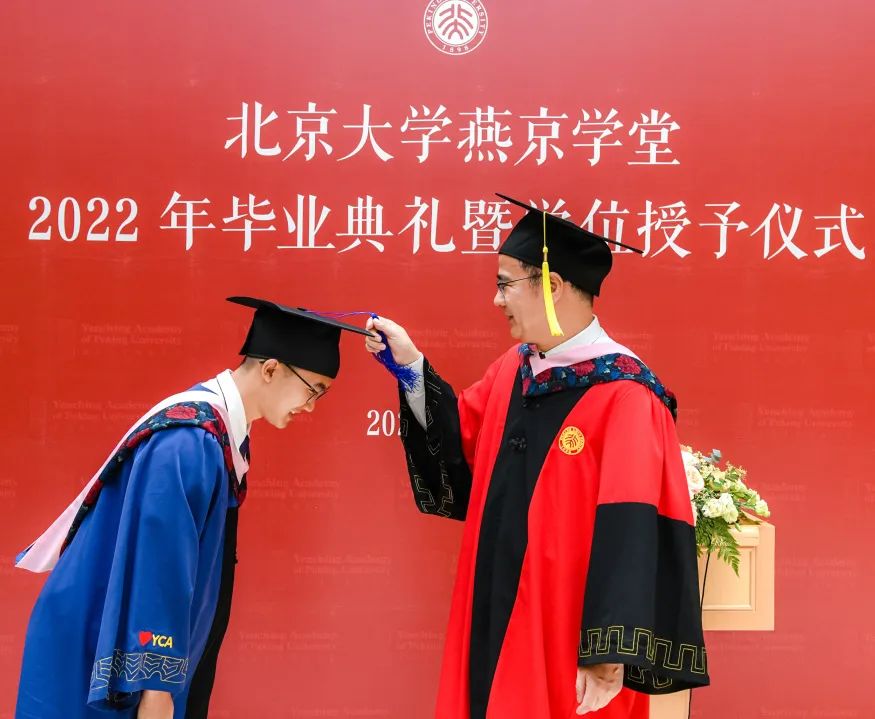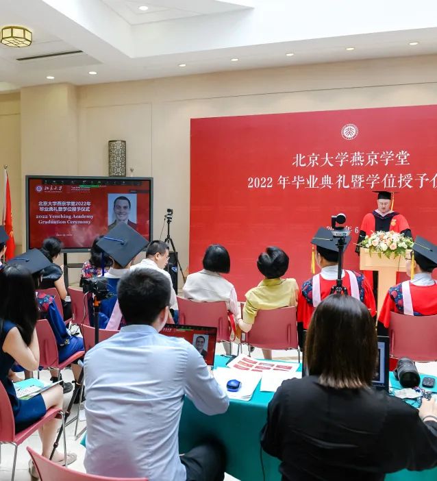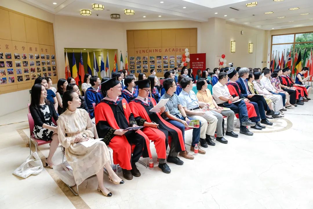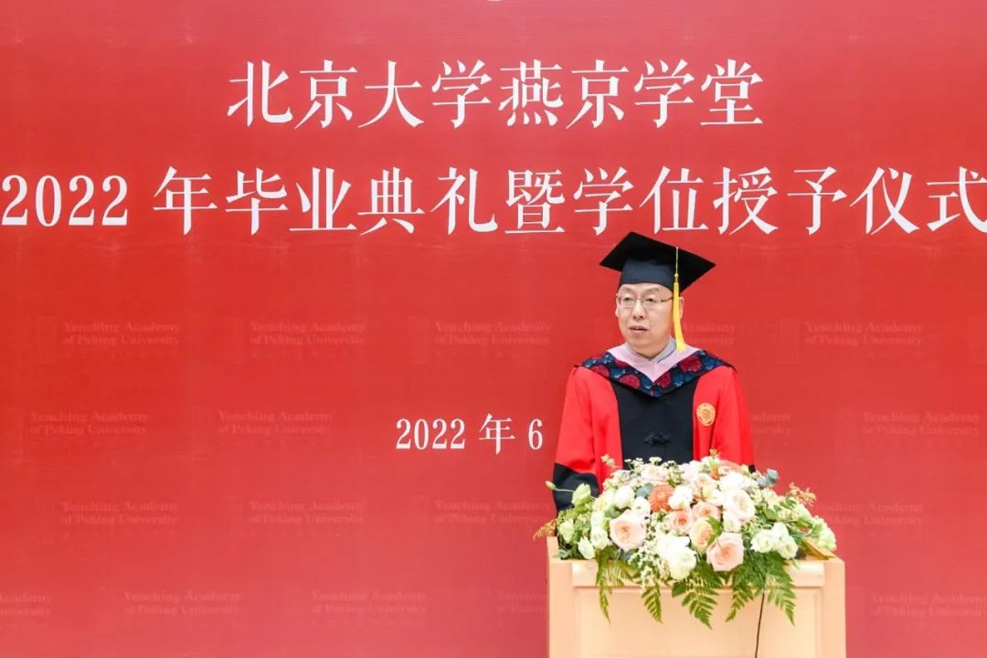 On Sunday, the 19th of June 2022, Yenching Academy of Peking University celebrated the 2022 Graduation Ceremony for the Class of 2022 Yenching Scholars in a synchronous online and on-site setting at the Peking University campus. The event featured all the graduating Scholars beautifully enrobed in their graduation gowns, joined by PKU Vice-President Wang Bo, Honorary Dean Yuan Ming, Dean Dong Qiang, Associate Dean Fan Shiming and Associate Dean Brent Haas, Director of Graduate Studies Lu Yang, and Assistant Dean Chen Changwei.
