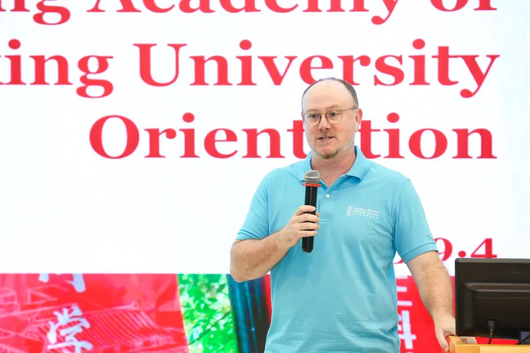 Associate Dean Brent Haas kicked off the orientation with an opening remark. He warmly welcomed the new cohort of Yenching Scholars, expressing his excitement to see them gather in the auditorium, ready to begin their academic journey at the Academy. He introduced to the new Scholars the members of the YCA Top Team and other professional staff members and their portfolios. Asst. Prof. Brent Haas encouraged the first-year students to reflect on the aspects of their academic and professional lives that have made them successful students and young adults and the areas that need improving to ensure they have a great YCA and China experience. “Everyone has room for improvement… I hope that during this week, you think about the causes of your success that have allowed you to get here and also think about not only what you want to learn at YCA but how you think you can be a better version of yourself as a young Scholar.” Associate Dean Haas also reminded the Scholars of the significance and responsibilities that accompany their status as Peking University graduate students and Yenching Scholars and urged them to explore and take advantage of the numerous opportunities available to them in their study at PKU.
