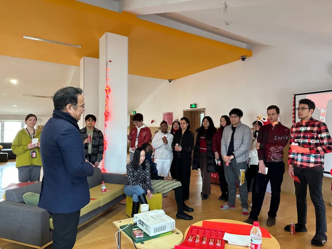 Professor Fan enlightened the international students about off-year customs in China, including the tradition of offering sacrifices to the kitchen god. Dean Dong talked about festival customs in traditional Chinese culture, emphasizing the importance Chinese people hold to returning home for major festivals. He extended warm wishes to the students for an enjoyable winter holiday at the Academy. This tea party fostered engaging conversations among our Scholars, who shared their holiday, study, and travel plans.