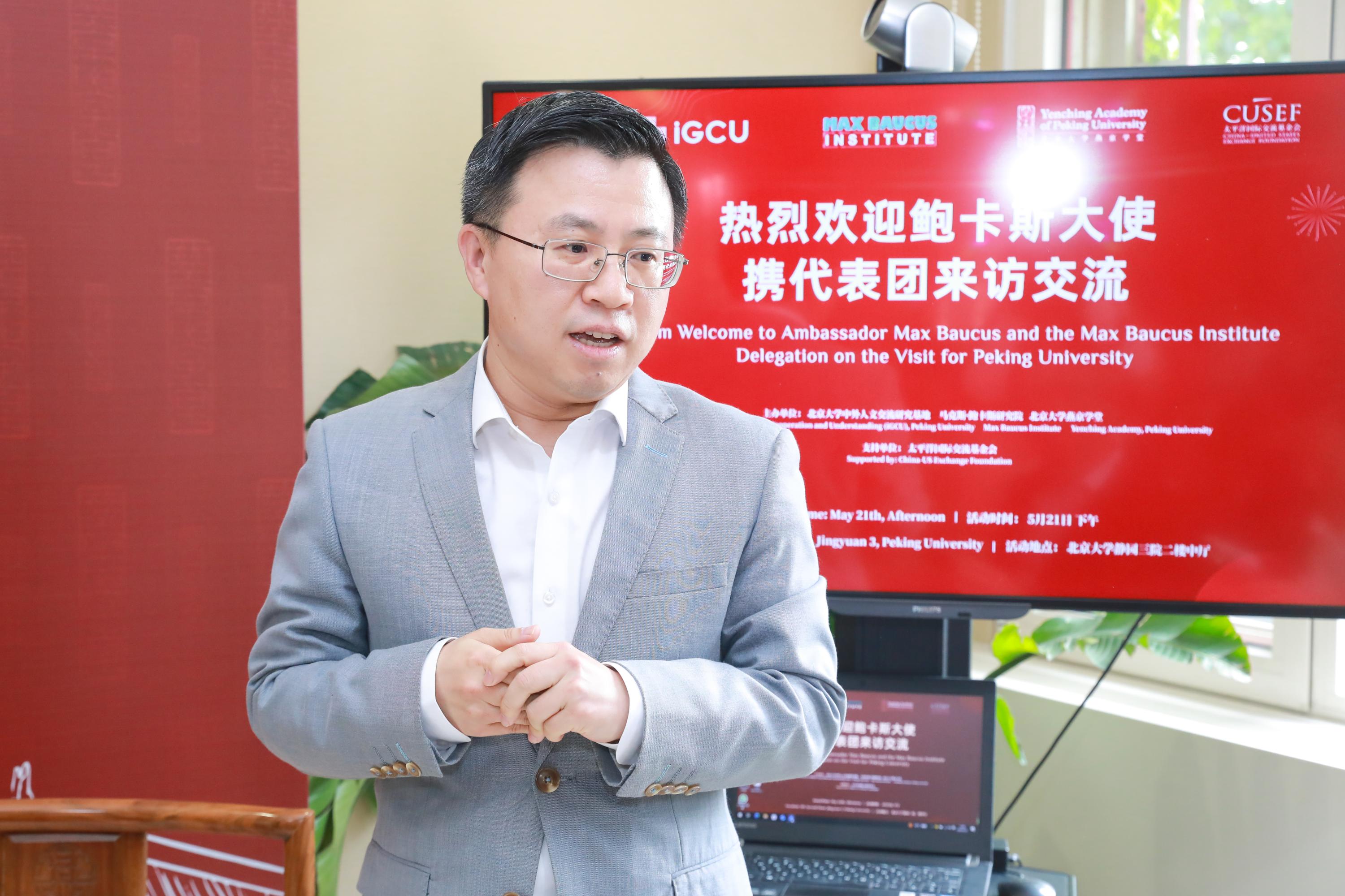 The session opened with warm remarks from Professor Wang Dong, a leading scholar of Sino-American relations, who welcomed the visiting delegation. He recalled Ambassador Baucus’s previous visit to PKU, noting how the dialogue between the United States and China has continued to evolve since that time. Emphasizing the lasting importance of people-to-people diplomacy, Professor Wang introduced the distinguished guests and set the tone for an afternoon of candid and constructive exchange.