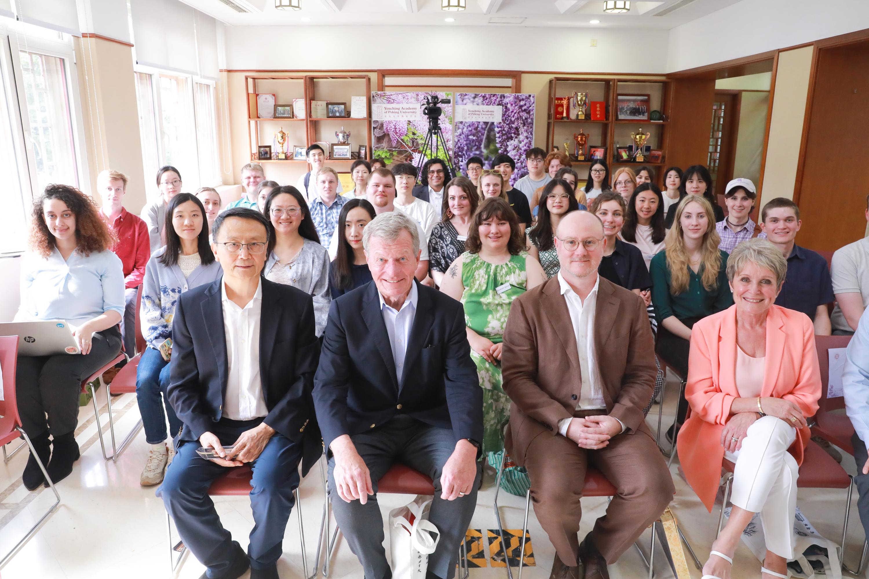 On May 21, 2025, Yenching Academy welcomed a delegation from the Max Baucus Institute, led by former U.S. Ambassador to China, Mr. Max Baucus, accompanied by his spouse, Melodee Hanes. The delegation comprised students from the University of Montana, Montana State University, and Montana Tech, with sponsorship from the China-United States Exchange Foundation.