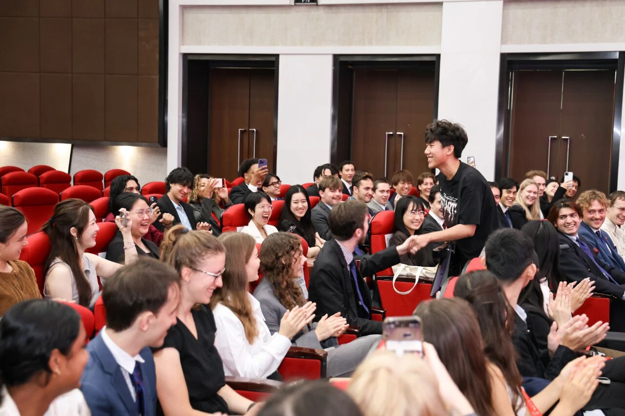 Yenching Academy’s opening ceremony began with a beautiful performance from members from the Muyun Jazz Music Camp, setting the scene for the opening ceremony on a high note.  This performance enhanced the joyous atmosphere filling the auditorium with smiles as the audience responded with warm applause and visible excitement.