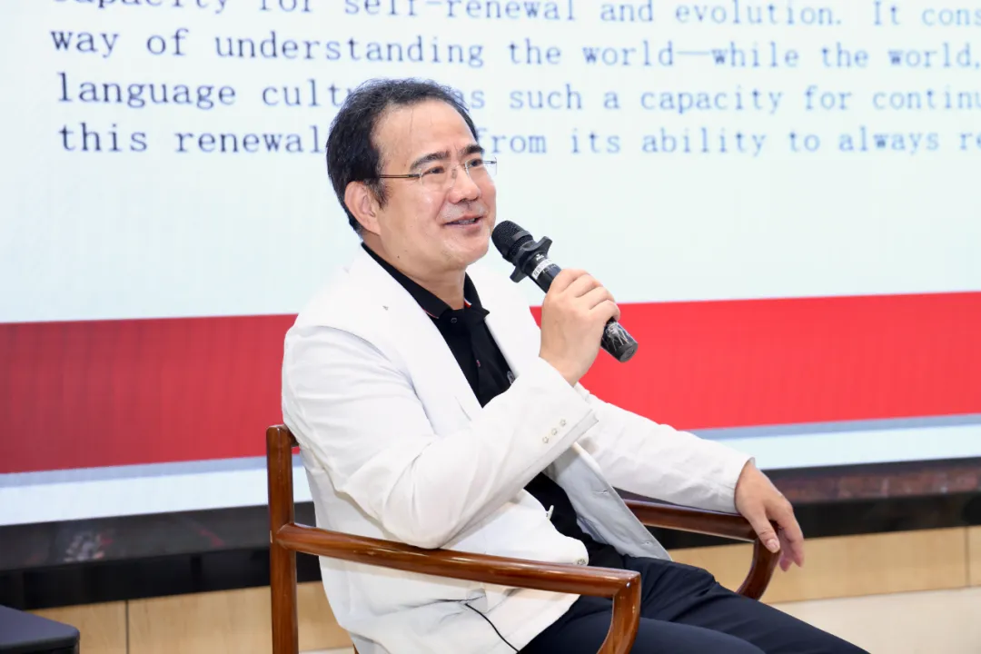 Dean Dong reviewed the evolution of Chinese language from historical and cultural perspectives. He recommended two linguistic classicals on the Chinese language. One is Xu Shen’s Shuowen jiezi (Explaining Simple and Analysing Compound Characters), and the other Liu Xie’s Wenxin diaolong (The Literary Mind and the Carving of Dragons). Shuowen jiezi is not only China’s first lexicographical monograph on the shape and formation of Chinese characters, but one of the first dictionaries in the world. In Shuowen jiezi, the author and lexicographer Xu Shen defined “liushu”, that is, the six categories of Chinese characters—pictographs, self-explanatory characters, associative compounds, phono-semantic compounds, mutually explanatory characters, and phonetic loan characters. “Liushu” provides the fundamental framework for understanding Chinese language and seeing how the Chinese way of thinking and rhetorical expression has been shaped by the language. In Wenxin diaolong, Liu Xie explored the aesthetic concerns and principles of writing and literature. This work marks a new-high of the Chinese language: The Chinese language and literature is explored as a reflection of nature and cosmic, as an interplay between human and the world, and as a communication between “mind” and “external things” (“Spiritual Thought or Imagination” in Wenxin diaolong).
