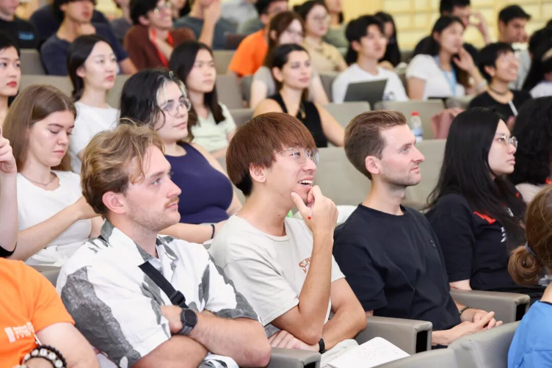 The lecture proceeded in three parts: the characteristics of the Chinese language, its history and culture, and its infinite potential.