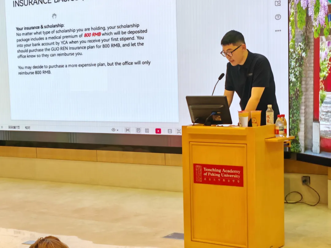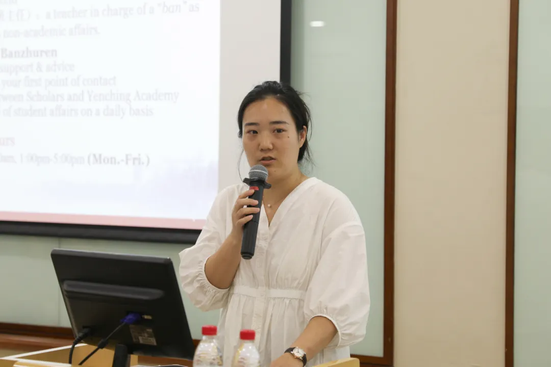 The Academy held an academic affairs briefing on the evening of September 2. Du Tao laoshi, Deputy Head of Curriculum and Scholarship made a thorough introduction of the Academy’s program setup, course requirements, and academic resources. Du laoshi explained what is and how to make “good selection of courses” through specific examples. Zhou Siyuan laoshi, Deputy Head of Curriculum and Scholarship gave details of the Academy’s scholarships and exchange programs, including scholarship types, requirements and selection criteria, as well as how to apply for a YCA-partner university under the exchange programs. Zhou laoshi also gave tips for study and life during an exchange. Wang Rong laoshi, Head of Degree and Student Status clarified the Academy’s regulations on student status, dissertation, degree-awarding, and the mentorship program, describing the student-mentor communication expectation and the mentor’s role in student development.