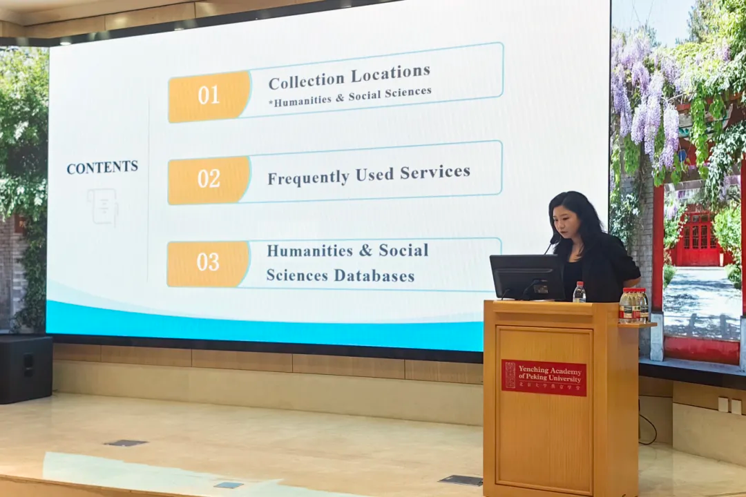 On the afternoon of September 4, Peking University Library and its Yenching Academy Branch co-sponsored a library services orientation session. Librarians introduced the collection locations, database access, and literature search service, and demonstrated how to use library facilities. Fu Juzheng laoshi from PKU Library’s Collaborative Service Center gave our Scholars a guided tour of the university library, where the students had an immersive experience for the borrowing, research, and digital academic services.