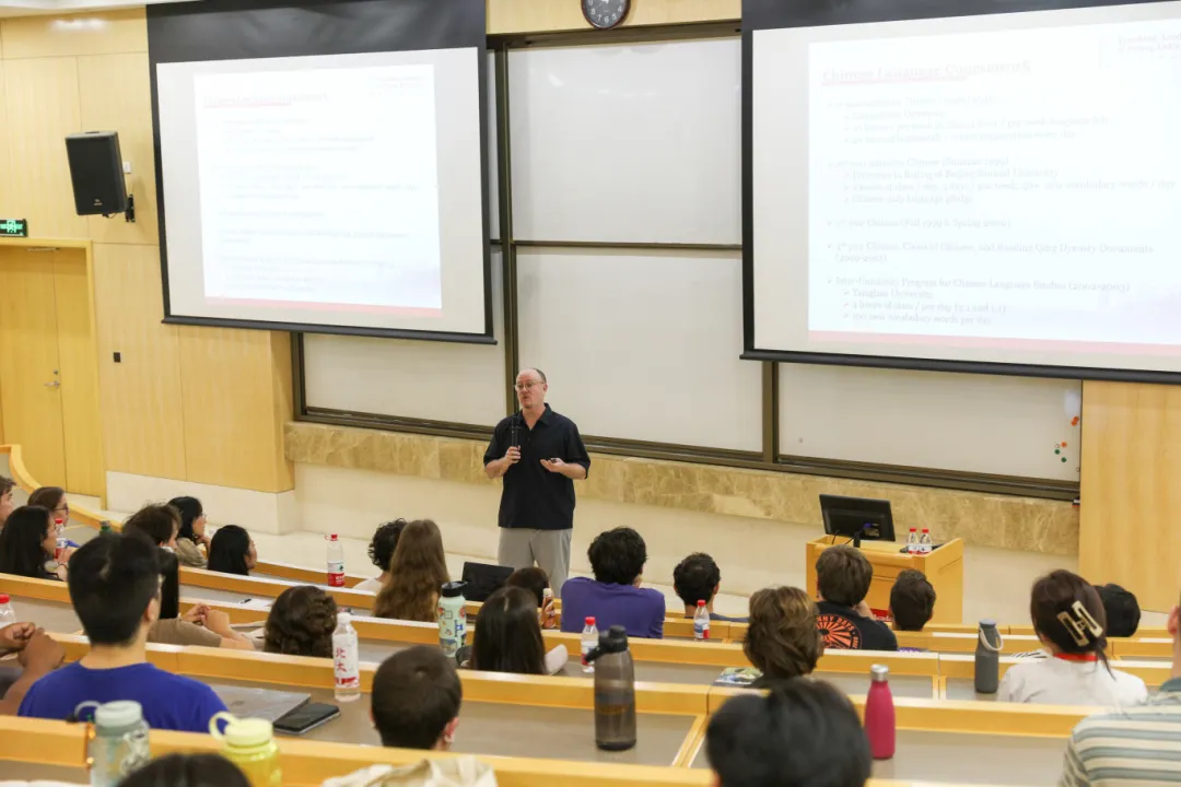 On the afternoon of September 4, Associate Dean Brent Haas gave a lecture “My Chinese Learning”. He reflected on his personal experience with and in China, which may date back to his Chinese learning at Georgetown University. Detailing his methods and schedule for Chinese learning, Haas noted that there is never a shortcut for learning Chinese. One must dedicate himself to intensive training. Drawing upon his own experiences, the Associate Dean gave specific suggestions for Chinese learners whose proficiencies may vary. He laid emphasis on perseverance, peer learning and student-teacher communication in Chinese learning. He assured that all efforts would be rewarded.